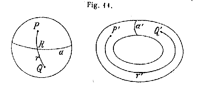 Zusatz. Ein von einer geschlossenen Linie begrenztes Stück einer Kugelfläche - oder, wie man auch sagen kann: eine Kugelfläche mit einer Öffnung - ist eine Grundform der ersten Classe. Ebenso ist eine Kugelfläche mit zwei, drei, u.s.w., n Öffnungen eine Grundform der zweiten, dritten, u.s.w., nten Classe.