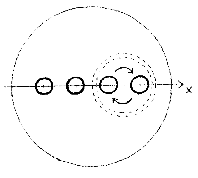 Eine Drehung von 180° der Kreisscheibe Ks((((2j/n)-1+xj)/2,0),(((2j/n)-1-xj)/2)+rj)