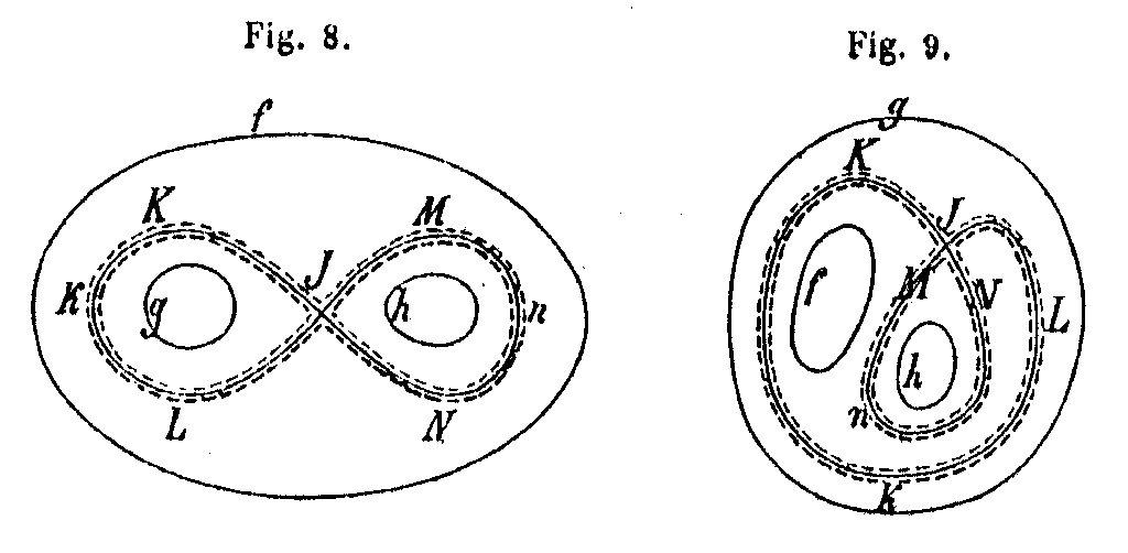 Um diesen Satz darzuthun, will ich vorher zeigen, dass und wie zwei körperliche Räume, deren jeder von einer geschlossenen Fläche der ersten Classe begrenzt ist, in el. verwandtschaftliche Beziehung gebracht werden können.
